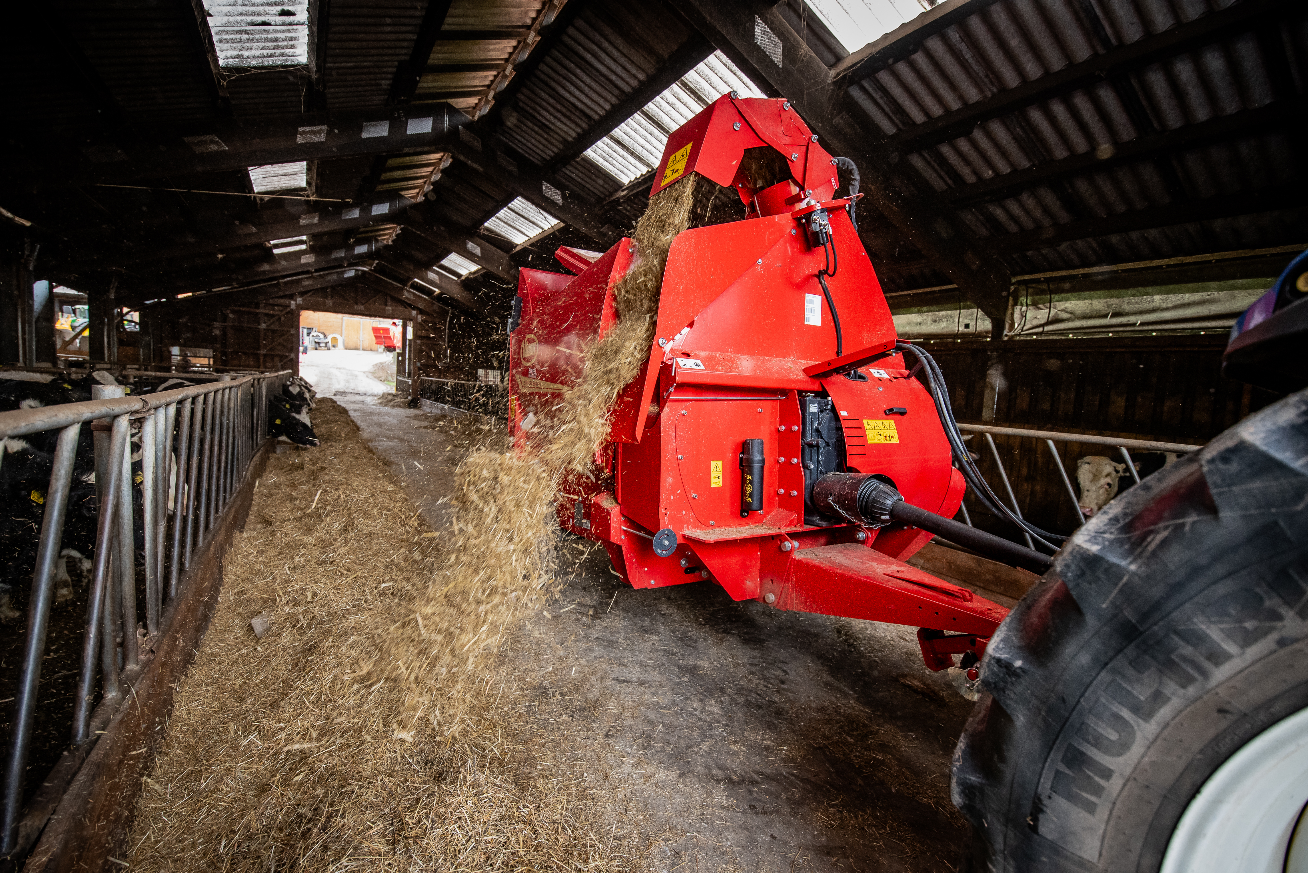 - At lower speeds the flywheel ensures a metered flow of silage or hay for feeding.